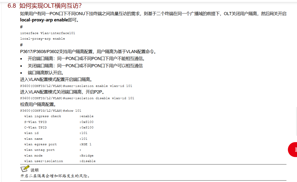 gpon默认开启用户隔离,将用户隔离关闭,然后网关开启本地arp代理