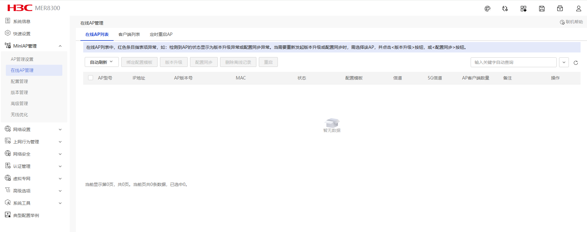 MER8300,划了2个VLAN,其中Vlan150计划给AP使用,从路由器直接挂个AP(Mini A61-1500),首次挂的时候在线AP列表能看到,手机能连接;路由器、AP重启后列表中看不到,空的,客户端也是空的,但手机能连上,也能上网,怎么回事?