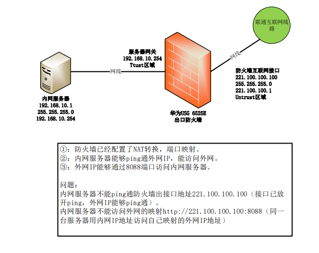 2、内网无法通过公网地址访问,可以在防火墙的内网口开启nat hairpin enable