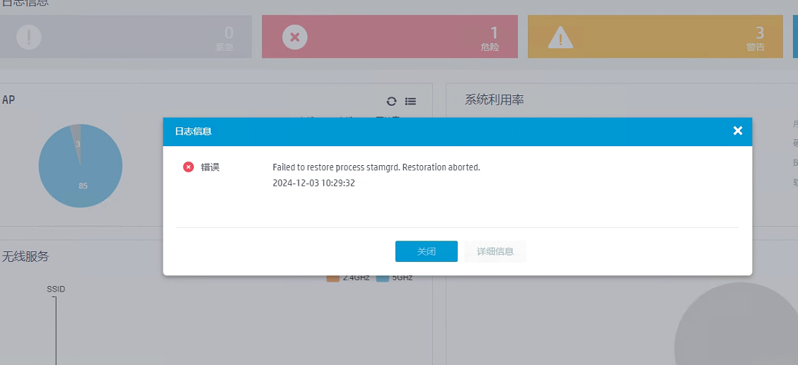 客户现场使用了一年左右的WX3508H无线控制器,近期突然出现无线服务模板丢失,配置保存过,在saved-configuration中也是能看到的,出现问题时重新配置服务配置或者重启设备能好一段时间,过几天又会出现这个现象,版本号为V7 R5457,设备提示以下信息。