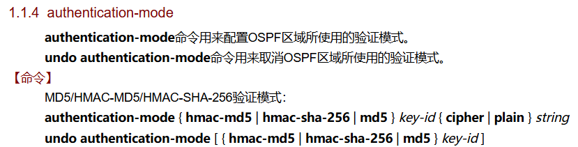 hmac-sha-256 算法只有keychain 方式且只有OSPF V3 才支持。 Ospf v2请使用其他算法,比如: hmac-md5或者MD5