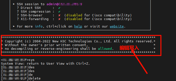 shell:设置非Modem登录用户登录进入用户视图时的欢迎信息。
