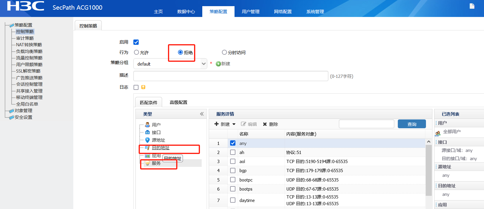 在控制策略里面建立一个拒绝的