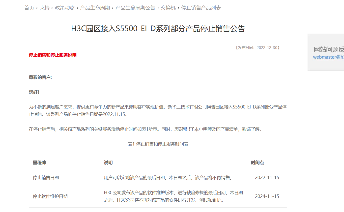 H3C园区接入S5500-EI-D系列部分产品停止销售公告-新华三集团-H3C