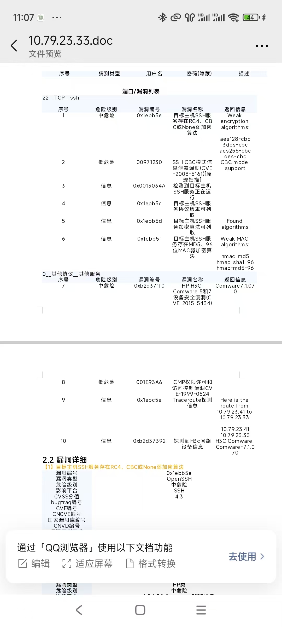 1.目标主机SSH服务存在RC4、CBC或None弱加密算法。