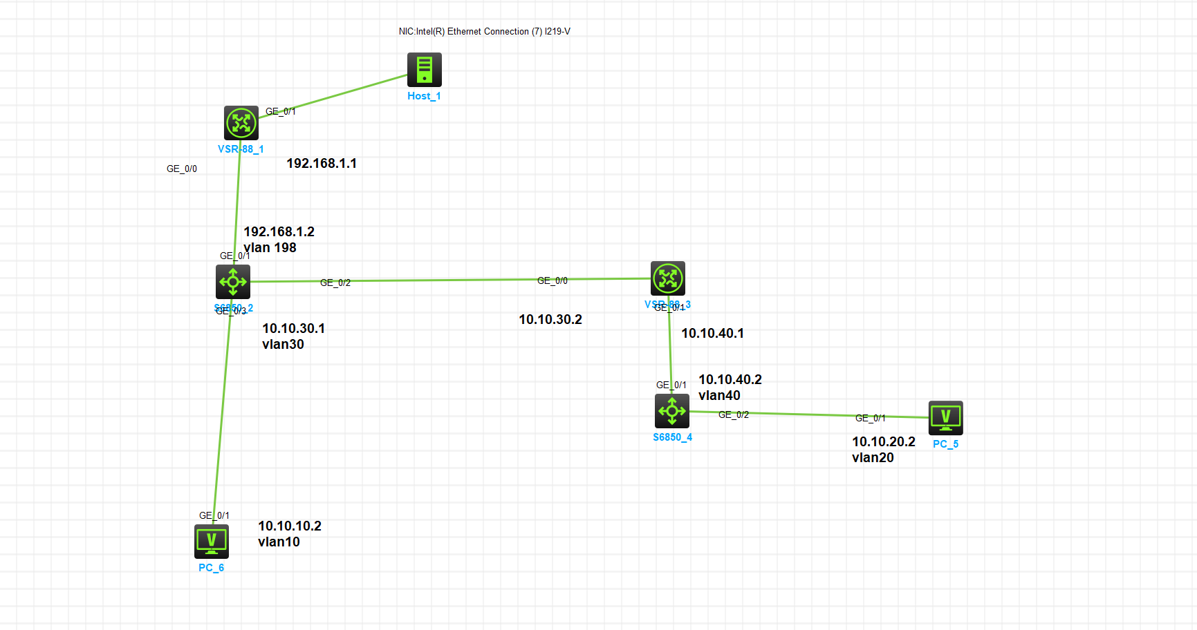 目前路由器以下的网可以互通,即PC可以ping通路由器,然后连了个host,VSR-88_1的1口设置了ip address dhcpalloc,nat outbound;