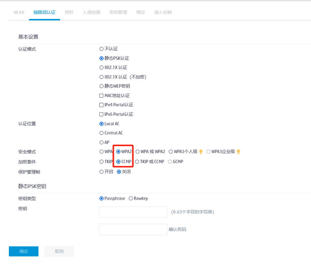 msg360 ws722 ,WIFI设置静态psk认证,安全模式wpa或WPA2 加密套件tkip或ccmp。