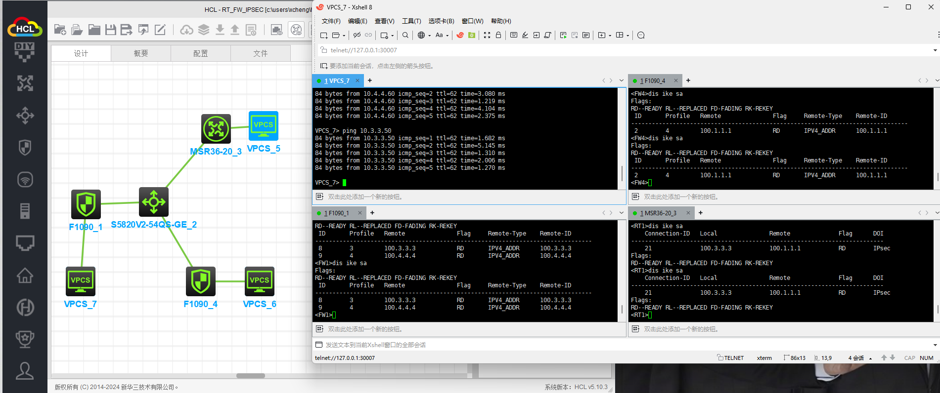 模拟器可以配置IPSec,配置完成后,可以使用终端相互ping一下,激发一下SA建立