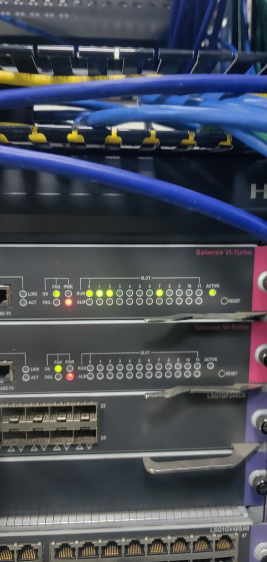 交换机7506E 有几个地方灯亮红灯
