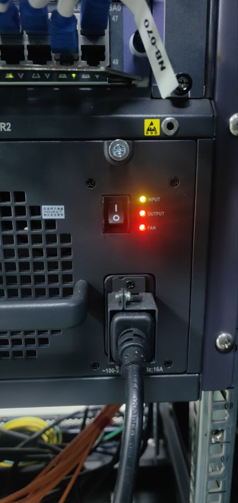 ,输入没问题,输出有问题,交叉测试,也就是把他插到其它电源插槽上,问题依旧的话,在保就走备件申请,不在保,就自己买备件替换吧