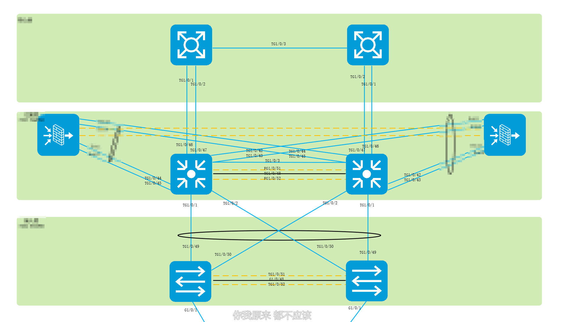 1.接入、汇聚层都是M-LAG聚合,网关都在汇聚设备上