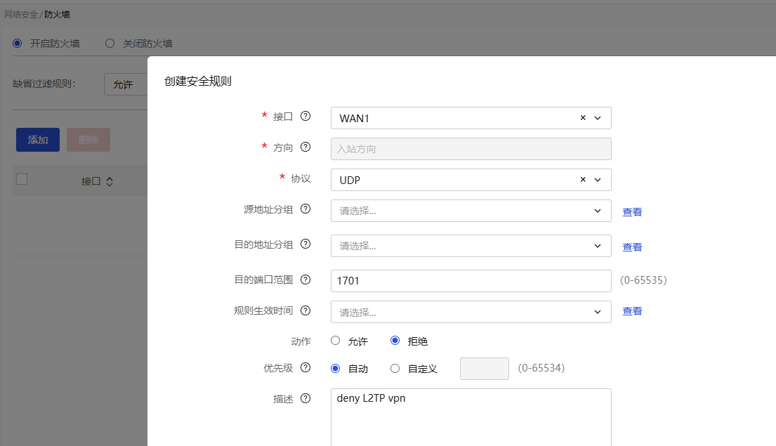 问题2:如何在路由器端禁止单层L2TP协议VPN的接入?我没有看到这样的选项,所以只能在防火墙中禁止了1701 UDP端口(L2TP协议使用的端口),但依然阻止不了单层L2TP协议VPN的接入。