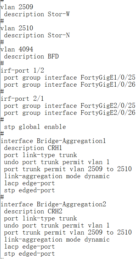 5、存储网(内外存储网复用场景)交换机配置片段参考如下: