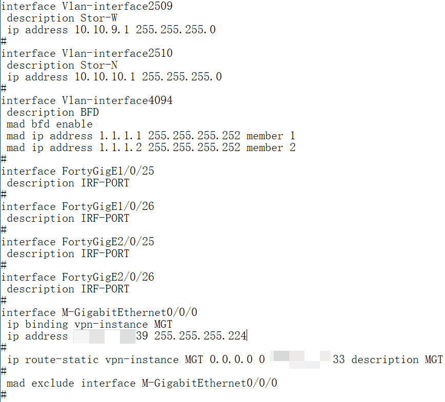 a、其中存储交换机堆叠后,可以不需要光口互联核心交换机,采用独立存储网络单元进行运行,但是为了后期方便维护管理,可以将堆叠后的存储交换机的带外管理口通过网线接入 【单独的设备带外管理网对应的VLAN接口】 。