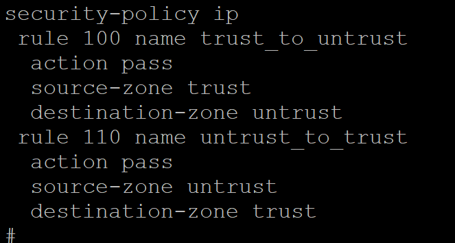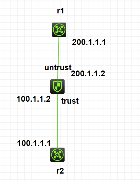 r1 ping r2 100.1.1.1的地址可以通,但是ping防火墙上的100.1.1.2不通,安全策略如图