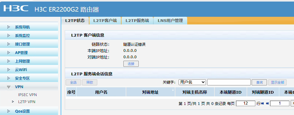 H3C ER2200G2作为客户端,组L2TP,所有账号密码,密钥都是正确的,但是显示认证错误
