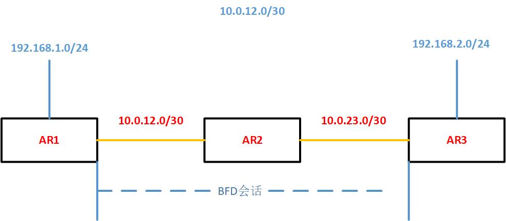 要实现AR1-AR3的 BFD多跳会话检测,实现在AR1和AR3上配置静态路由关联BFD会话,实现AR1 192.168.1.0/24访问AR3 192.168.2.0/24。