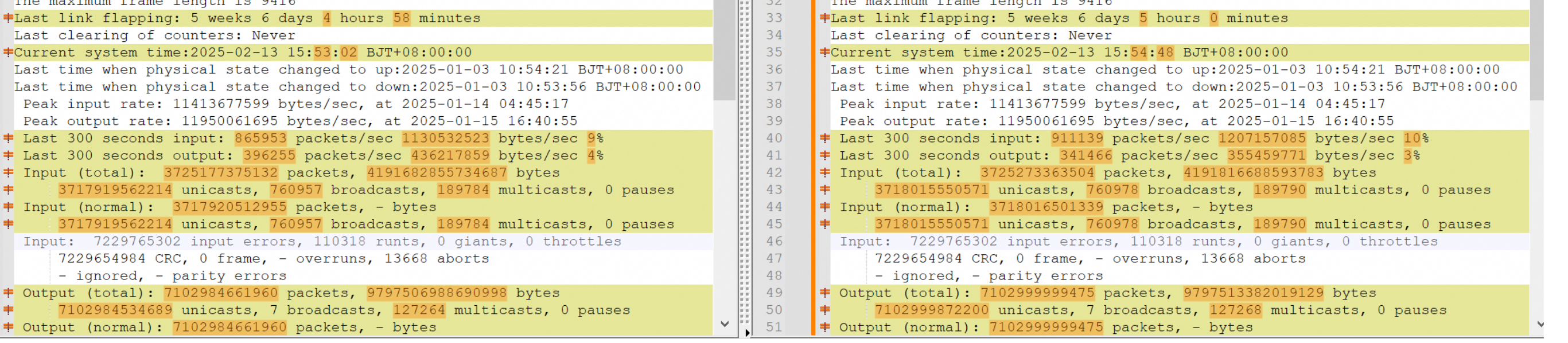 ???你是从截图的信息哪里看出来丢包的?你标注的那些是该端口流量的历史进出总量;后面的百分比表示最新300秒内,进出流量每秒占用的带宽
