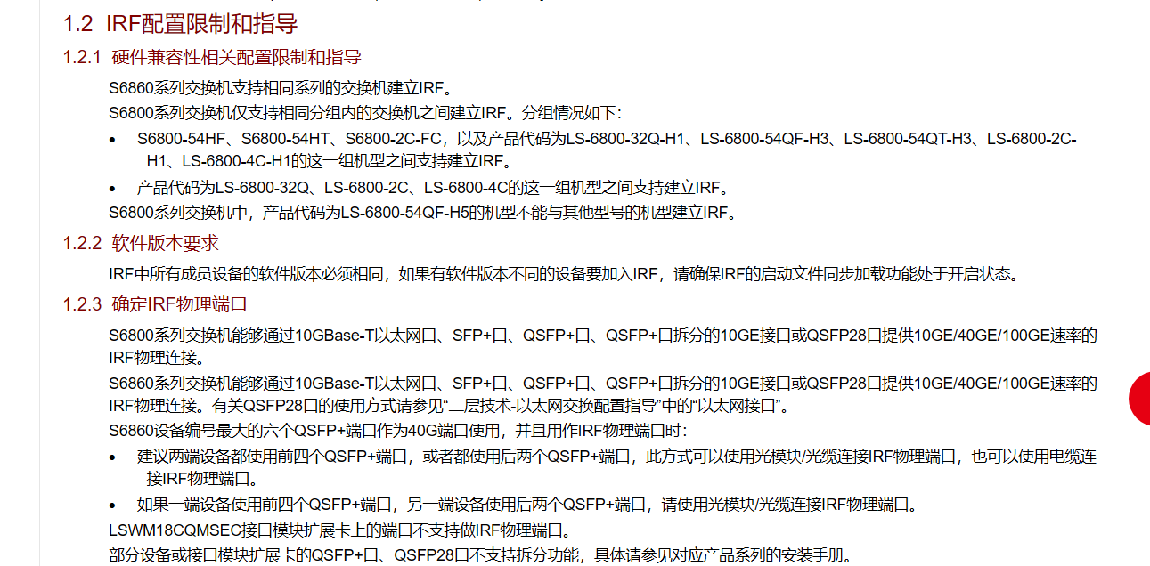 1.这个交换机是必须用40G口做IRF还是48个万兆光口也可以做