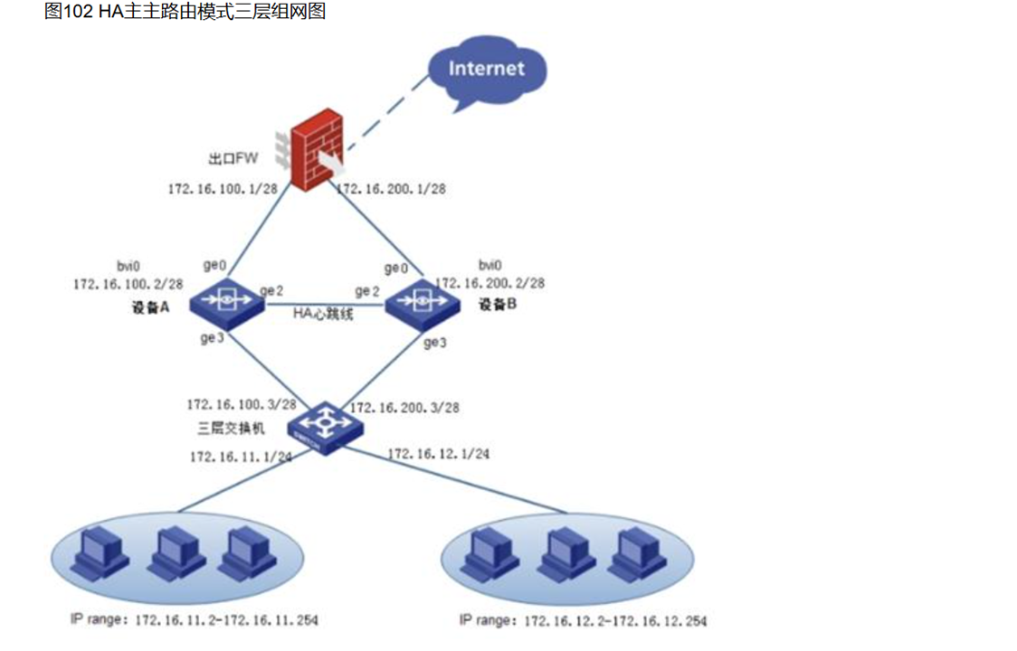 1、两台ACG做HA主主透明桥模式三层组网,此配置案例中防火墙是一台。
