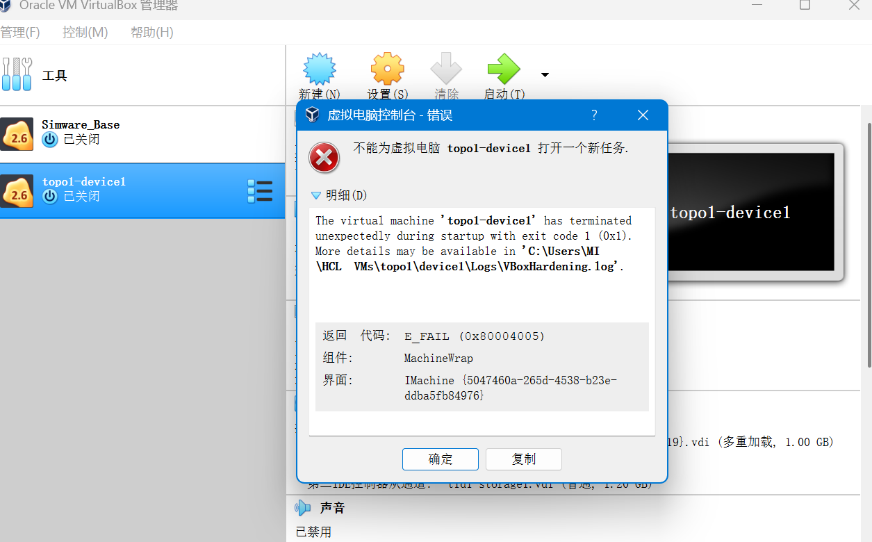 电脑是win11系统之前都是好好的能正常使用,一段时间没有使用模拟器后就无法启动设备了,试了网上的好多办法比如关闭虚拟化、虚拟化安全更新到最新版本等等都不管用