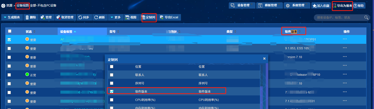 在IMC上可以看到加入IMC的交换机的型号版本吗?怎么用表格形式导出型号版本?