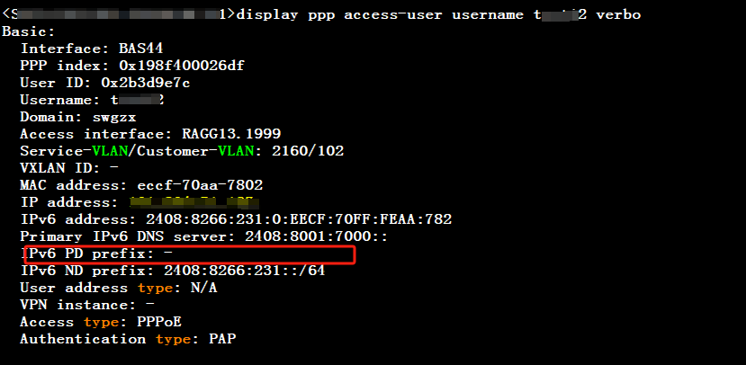 aaa服务器上通过radius的123号属性直接下发到bras的ipv6的pd前缀属性,失败