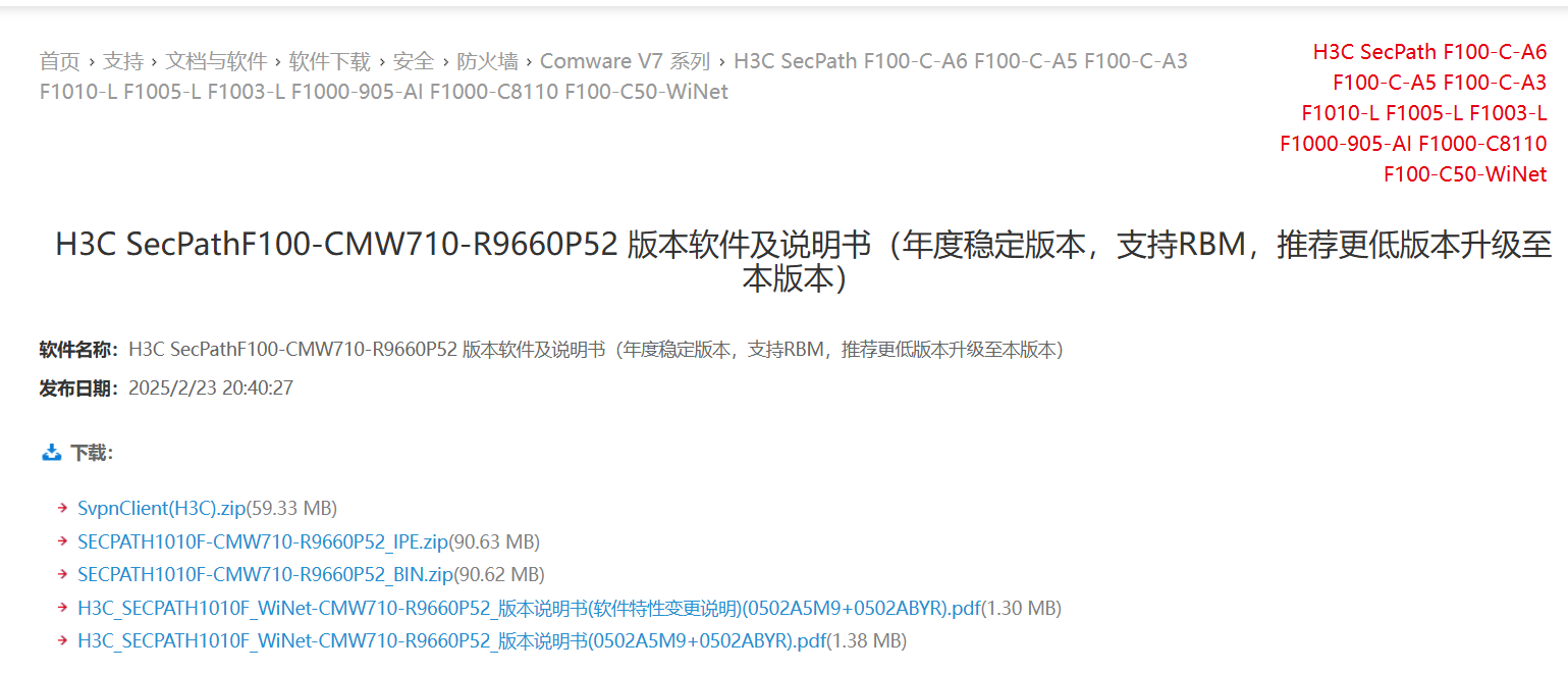 https://www.h3c.com/cn/Service/Document_Software/Software_Download/IP_Security/FW/Comware_V7/H3C_SecPath_F100-C-A6/