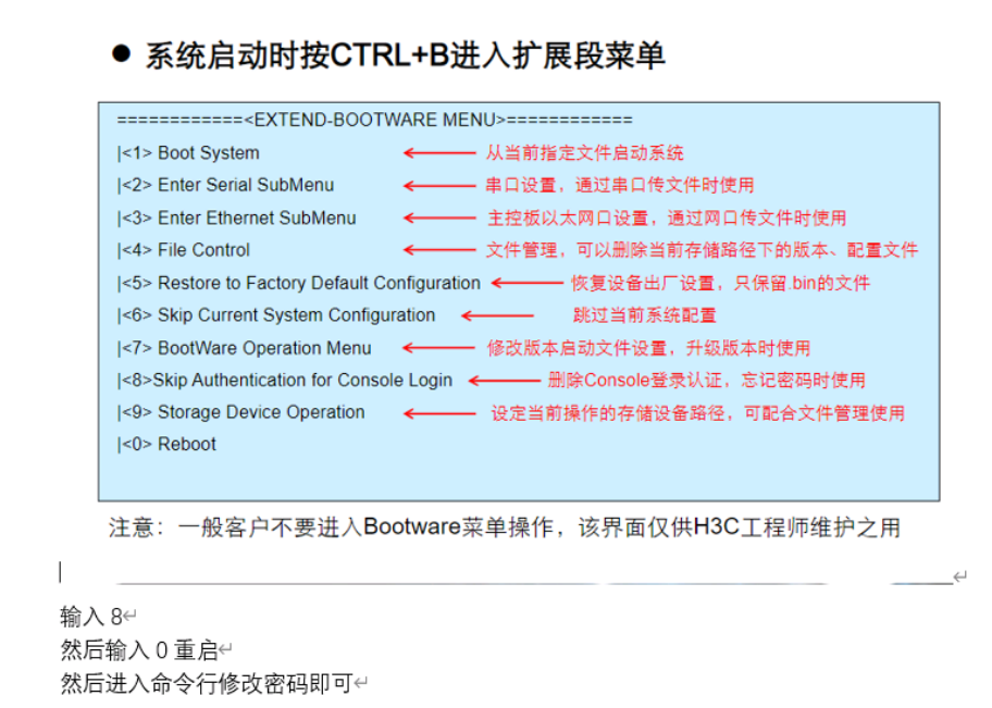 1.1 通过BootWare菜单恢复Console口登录认证密码