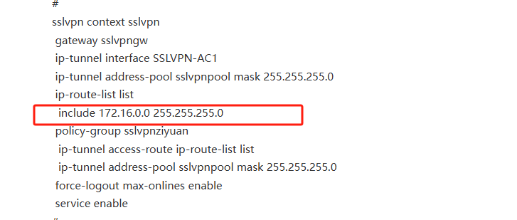 2、检查下sslvpn下发路由情况