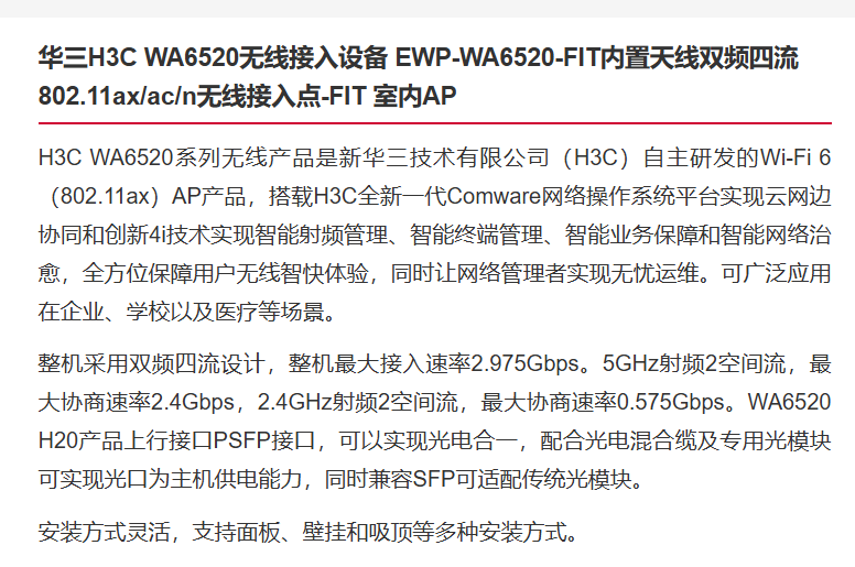 比如wa6520-fit 2 标识双拼、支持2.4G 和5G;