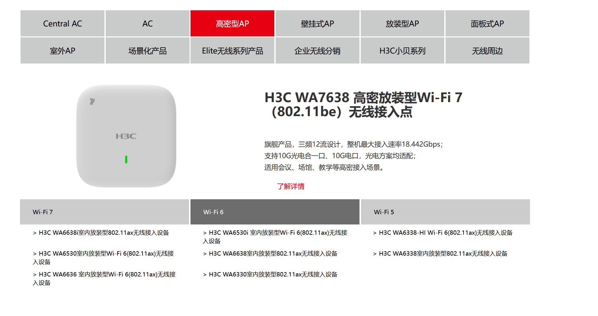 wa6530-fit 3表示支持3频为高密款型ap、支持2.4G、5.2G 和 5.8G