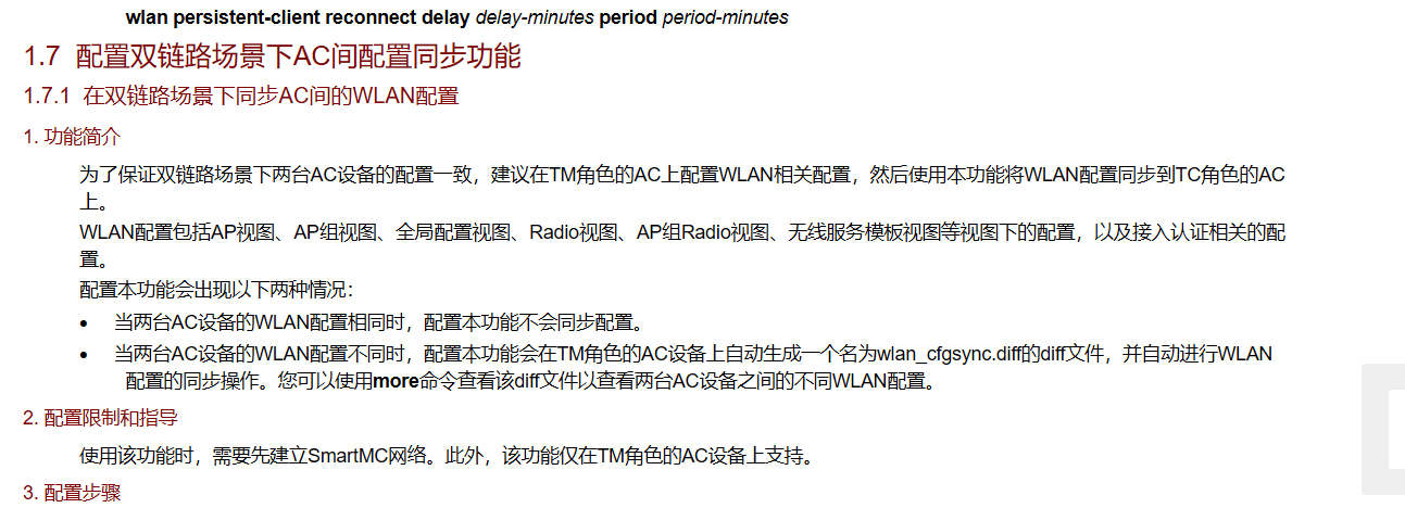 参考手册 1.7 配置双链路场景下AC间配置同步功能