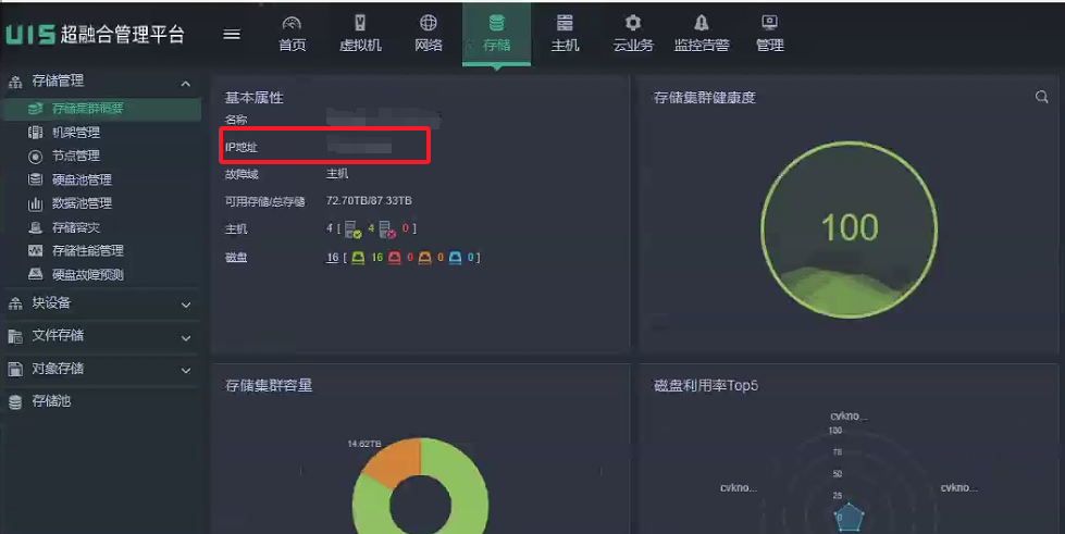 如何在uis查看存储集群handy VIP