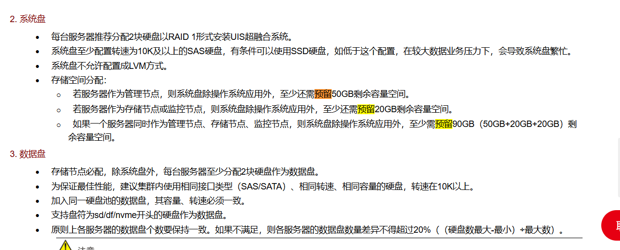 部署了UIS-Sec管理组件,需按规范为UIS-Sec管理组件预留独占的存储资源池(如3块480GB+硬盘或2块800GB+硬盘),并且不允许其他业务使用。未部署UIS-Sec,则未明确要求预留,但需确保其他业务不占用系统盘要求的存储池。不一致的情况可以看看这个https://zhiliao.h3c.com/Theme/details/228250分布式存储采用多副本冗余机制,总有效容量=物理容量/副本数。系统元数据、预留空间等也会导致硬盘池已用容量与数据池总有效容量不一致。