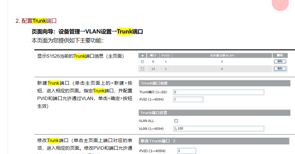 软件版本S1526-R0011,指示灯在端口左面如何配置端口模式为trunk
