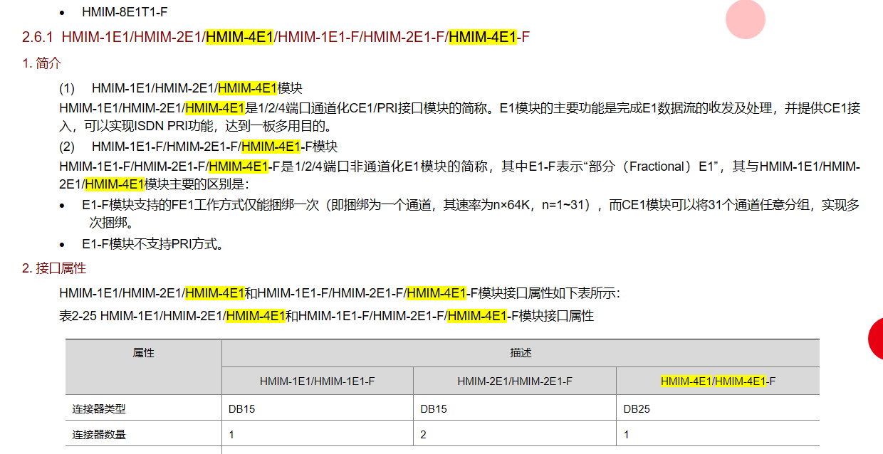 | HMIM-4E1 | 4 个 E1 端口 | 通用 E1 | 适用于 通用 E1 业务,可用于 IP、TDM 传输 |