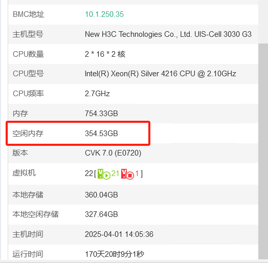 3. 检查UIS版本是否为E0802P01之后版本,旧版本存在已知内存统计BUG需升级解决