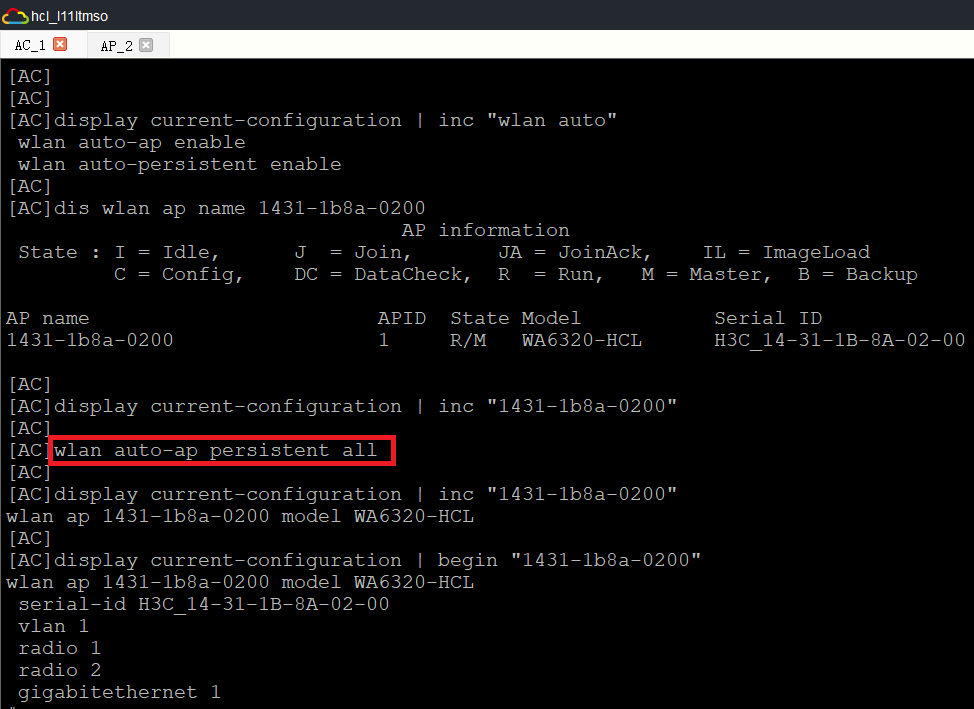只用wlan auto-persistent enable可能导致之前已上线的自动ap未被固化。