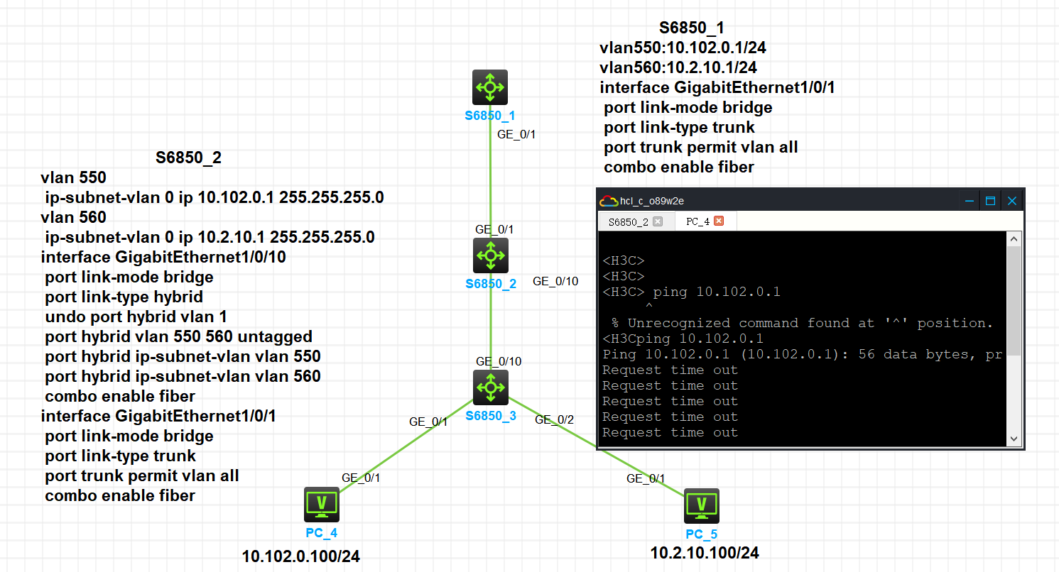 交换机基于ip划分vlan,我这样配置S1和S2、S3空配置,但是连网关都不通,这是哪里出问题了呢