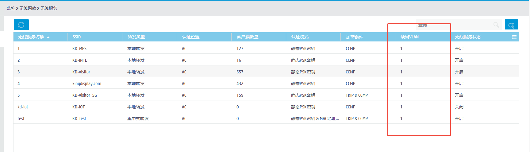 缺省VLAN:无线服务未使用授权VLAN且在绑定AP组/AP时未指定VLAN/VLAN组时,终端上线后所属的VLAN。