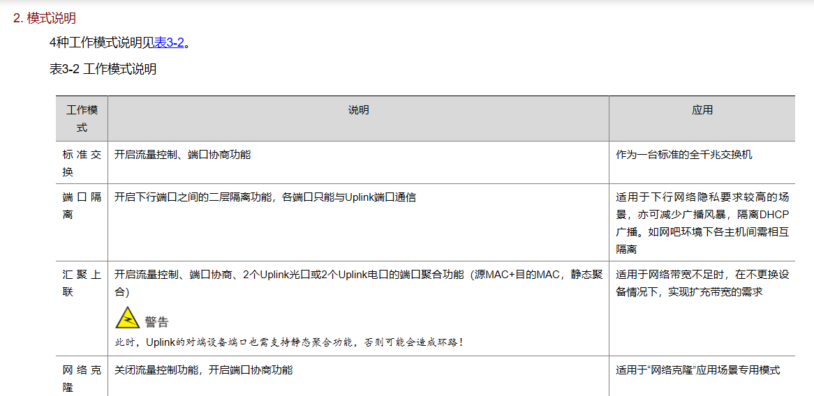 按键解锁后,单击功能键,可切换交换机的工作模式。切换时,对应的工作模式指示灯会亮起