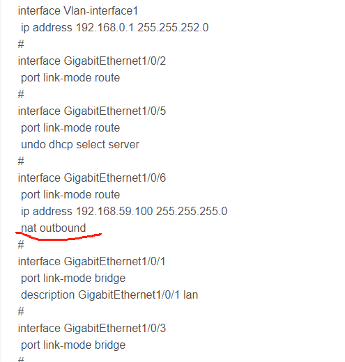 今天去维修一个AC,发现该AC控制器1/0/6下配置了出口ip和NAT,在vlan1上配置了内部局域网的网关192.168.0.1/24并开启了DHCP服务,192.168.0.0的地址转换为192.168.59.100出去,但是为啥NAT outbound 后边没加ACL啊?该AC怎么知道对哪个网段做NAT地址转换呢?