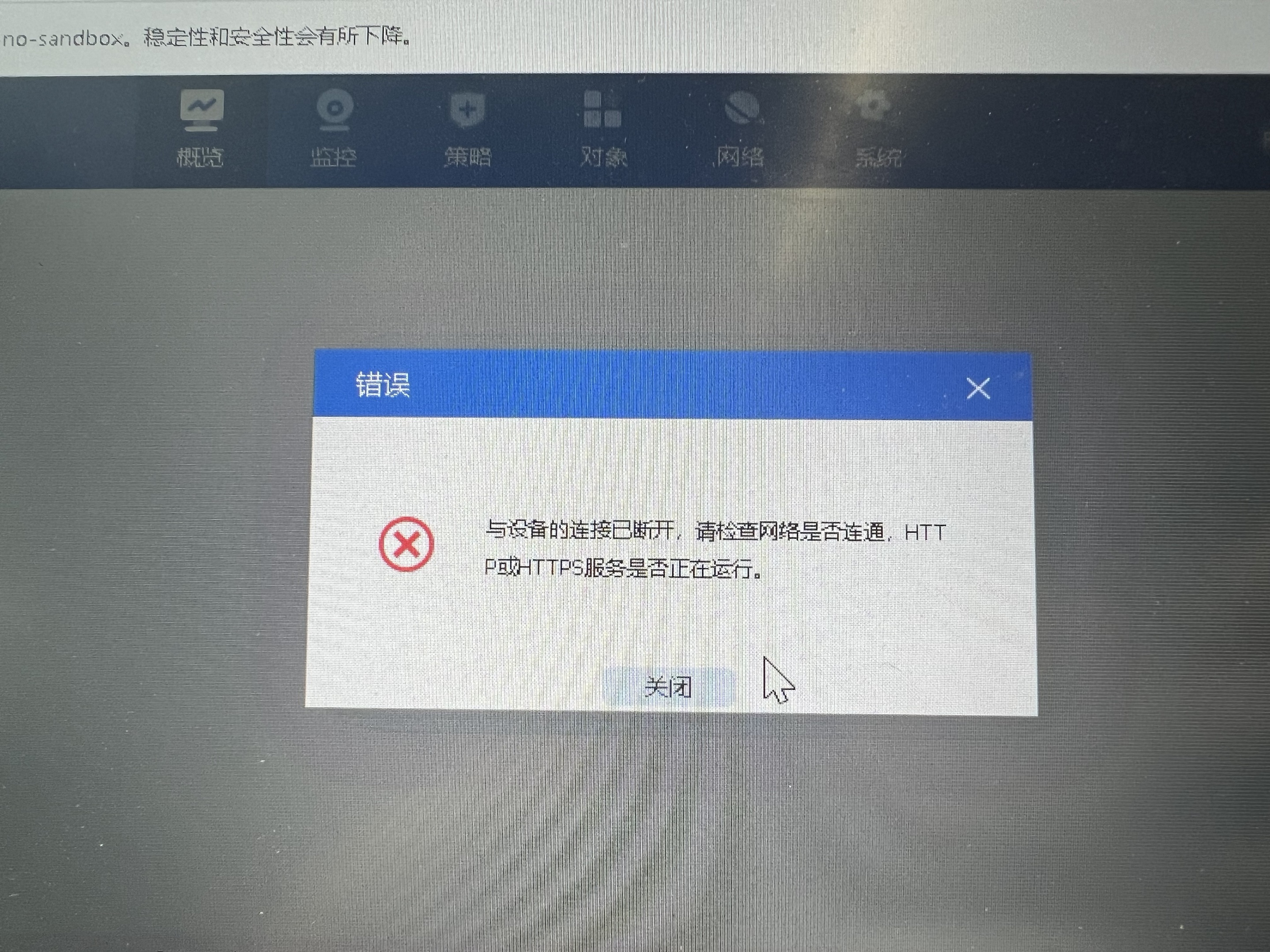 设备是新墙,每次登录web都会报错:与设备的连接已断开,但是功能似乎正常