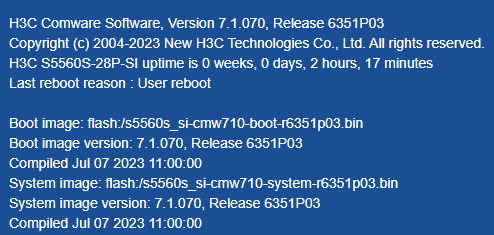H3C Comware Software, Version 7.1.070, Release 6318P01
