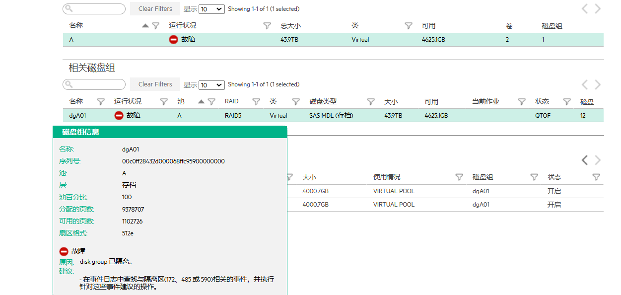 MSA2040 一共12块4T硬盘,其中11号硬盘已经故障,8号硬盘存在坏道,因此磁盘组被系统隔离,现在拿了新硬盘替换11号硬盘,一开始进入重建状态,后面重建失败,但是新盘已经是成员盘,磁盘组重新被隔离了,现在这种情况怎么处理?