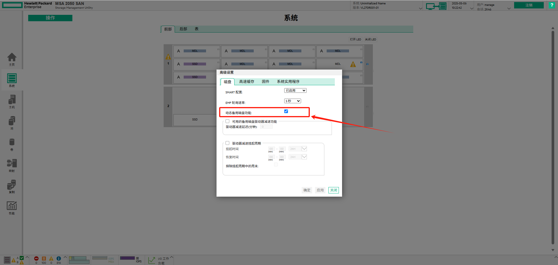 在system-Action-Advanced Settings里确认Dynamic Spare Capability选项是否勾选。
