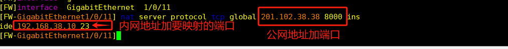 [H3C-GigabitEthernet0/0]nat server protocol tcp global current-interface 8080 inside 192.168.1.100 www