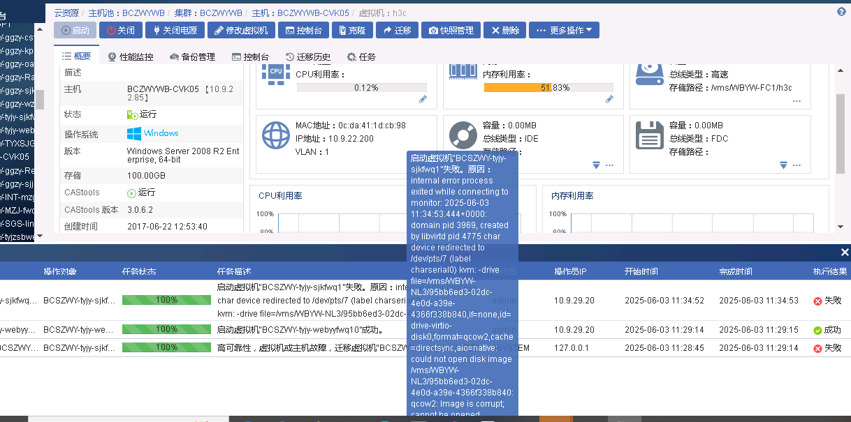 虚拟机自动关机,重启失败,提示是镜像的问题