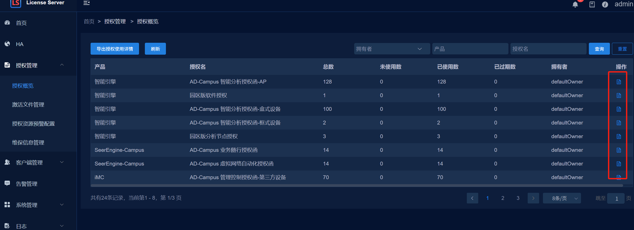 进入 License/客户端连接/客户端详情 页面
